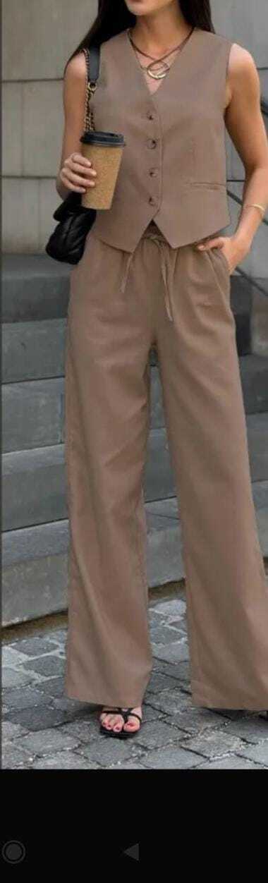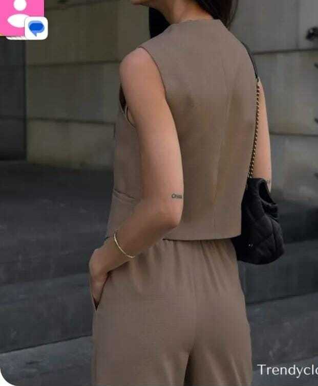 Костюм имеет классический дизайн, который никогда не выйдет из моды. Он состоит из брюк и жилета, что позволяет создавать различные образы и комбинировать с различными аксессуарами.